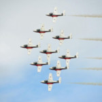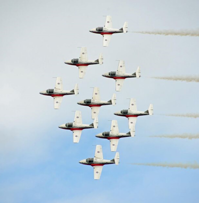 The airshow featured military static and flying displays from across the Canadian Forces. In addition, a large variety of unique, historic and modern military and civilian aircraft from across North America graced the sky and tarmac. Whilst the weather was not that good in the morning, the clouds cleared away after lunch and the Sun came out for a spectacular set of flying demonstrations in the afternoon. We were delighted by both military displays such as with the Cormorant, 407 Squadron CP-140 and a single CF18 fighter jet but also the veritable RCAF Snowbirds display team and some incredible, dare-devil flying both singly and in combination from many civilian pilots. Ms. Teresa Stokes from Gene Sourcy Airshows was absolutely amazing in her wingwalking on the Grumman “Showcat” biplane as she stayed on the wing top whilst her pilot threw the biplane around the skies in high ‘G’ maneuvers to the delight of the large airshow crowds.